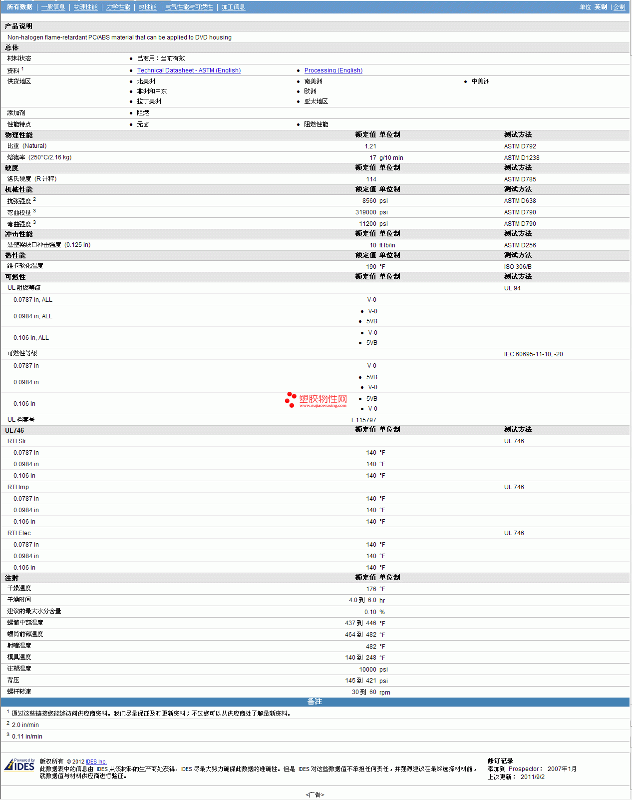 更多Infino ABS/PC NH-1057物性表报价,图片、材质证明、UL黄卡、物质安全资料表(MSDS)等可来电咨询赵先生:13424755533 或QQ:27660005