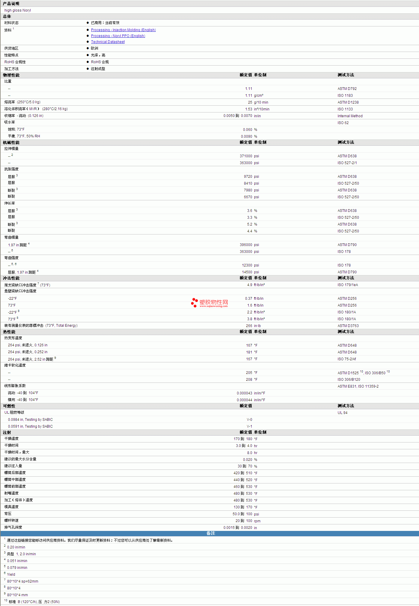 | 溶化体积流率(MVR) (280°C/2.16 kg) | 1.53 | in³/10min | ISO 1133 |