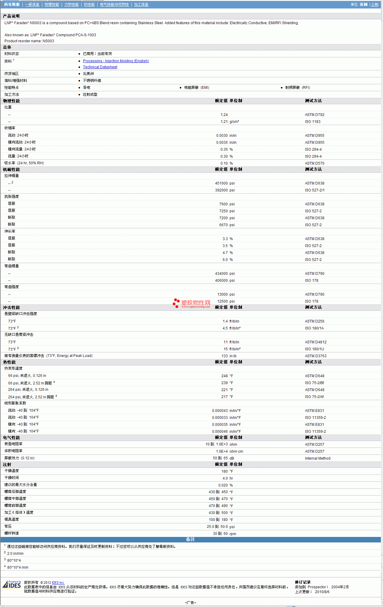 更多LNP Faradex ABS/PC NS003物性表报价,图片、材质证明、UL黄卡、物质安全资料表(MSDS)等可来电咨询赵先生:13424755533 或QQ:27660005