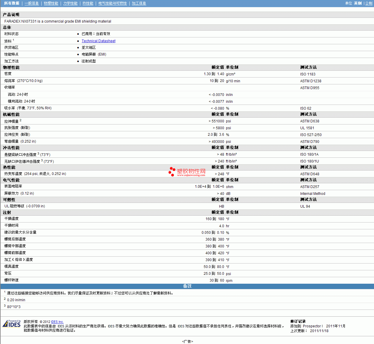 如需了解LNP Faradex ABS/PC NX07331物性表更多详情,ROHS(SGS)报告、物质安全资料表(MSDS)、材质证明、UL黄卡等,最新行情报价等可来电咨询:赵先生:13424755533 或QQ:27660005