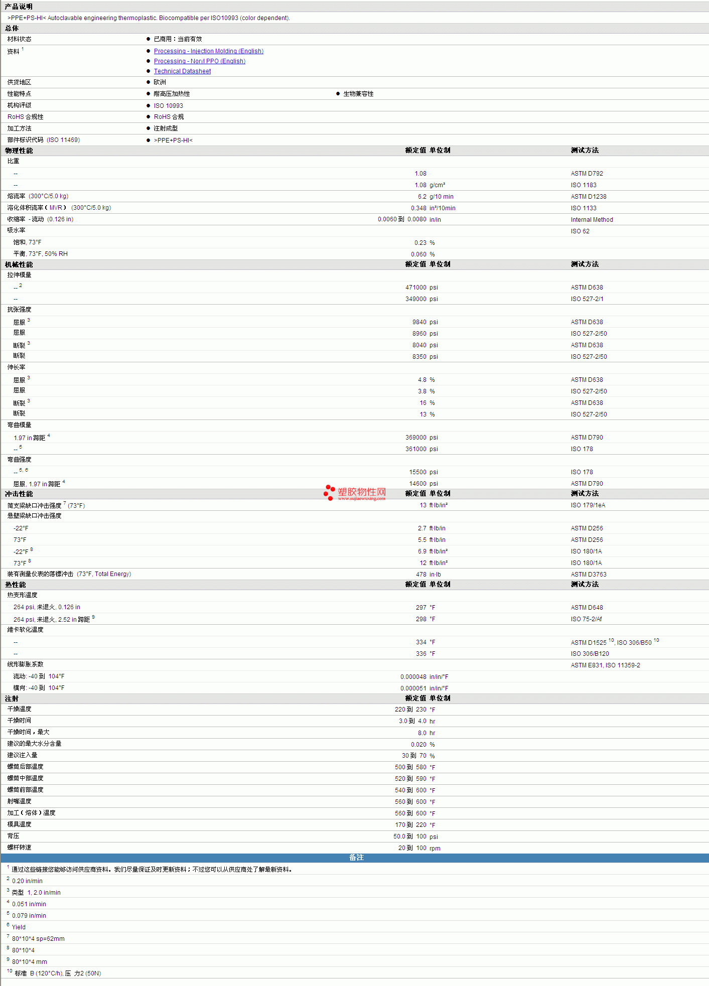 | 溶化体积流率(MVR) (300°C/5.0 kg) | 0.348 | in³/10min | ISO 1133 |