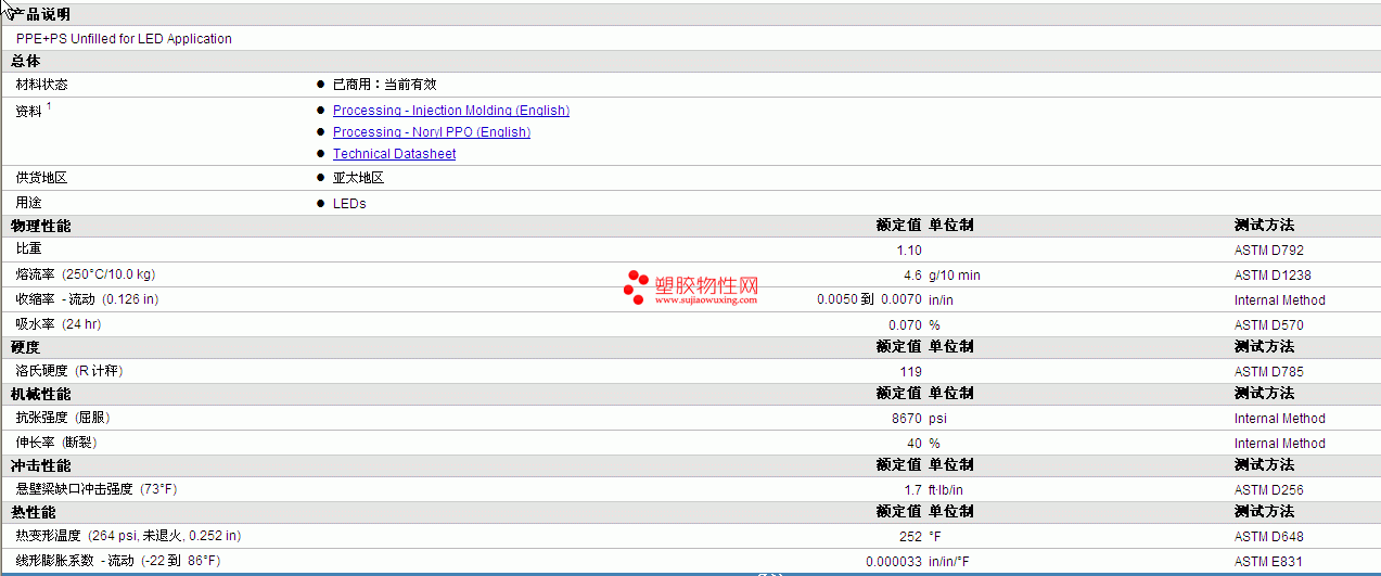 | 机械性能 | 额定值 | 单位制 | 测试方法 |