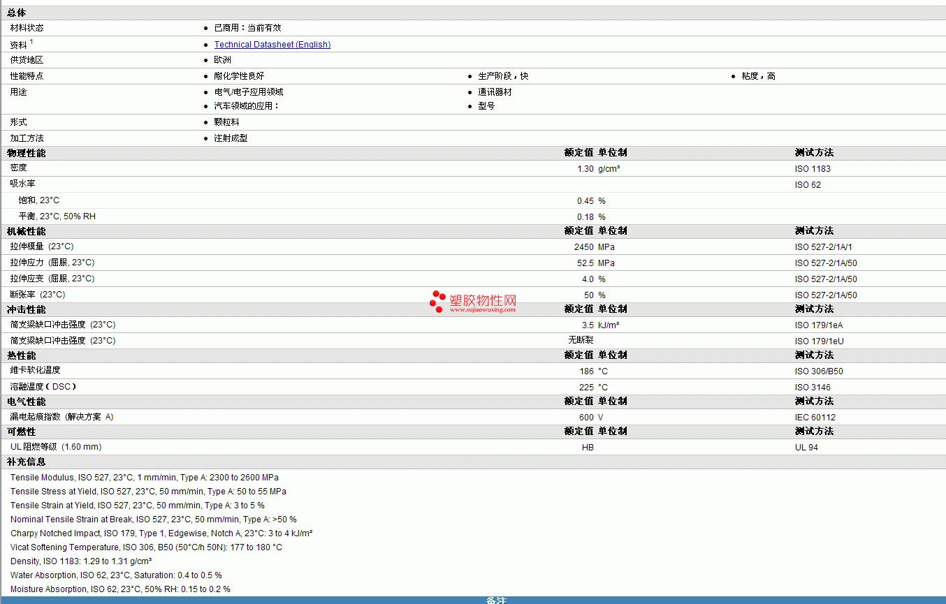 NORYL GTX PPE EXNX0080 Resin 物性表
