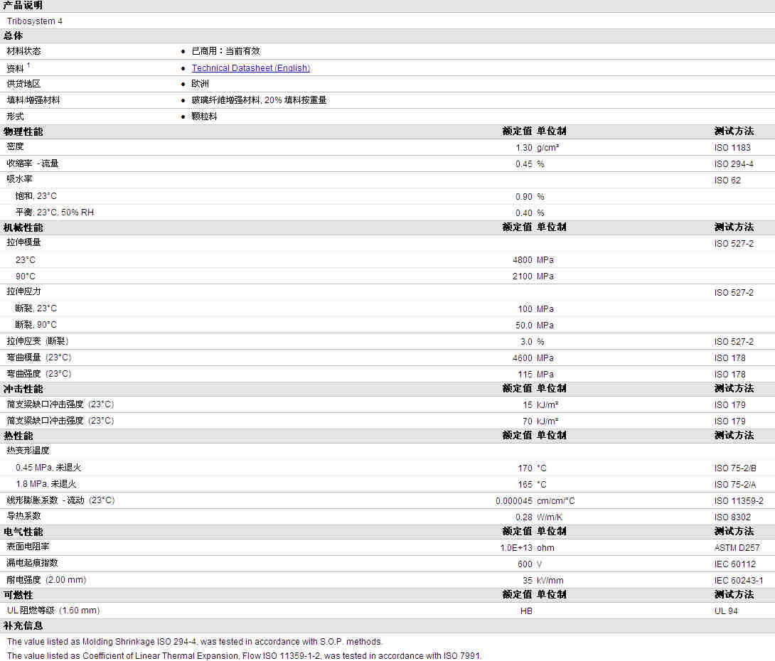 | 机械性能 | 额定值 | 单位制 | 测试方法 |