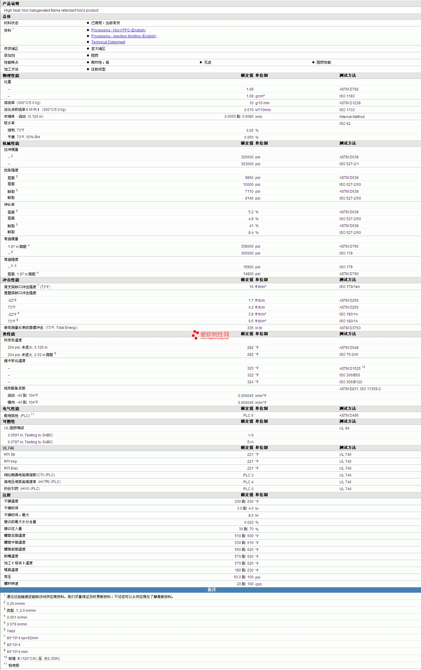 | 溶化体积流率(MVR) (300°C/5.0 kg) | 0.610 | in³/10min | ISO 1133 |