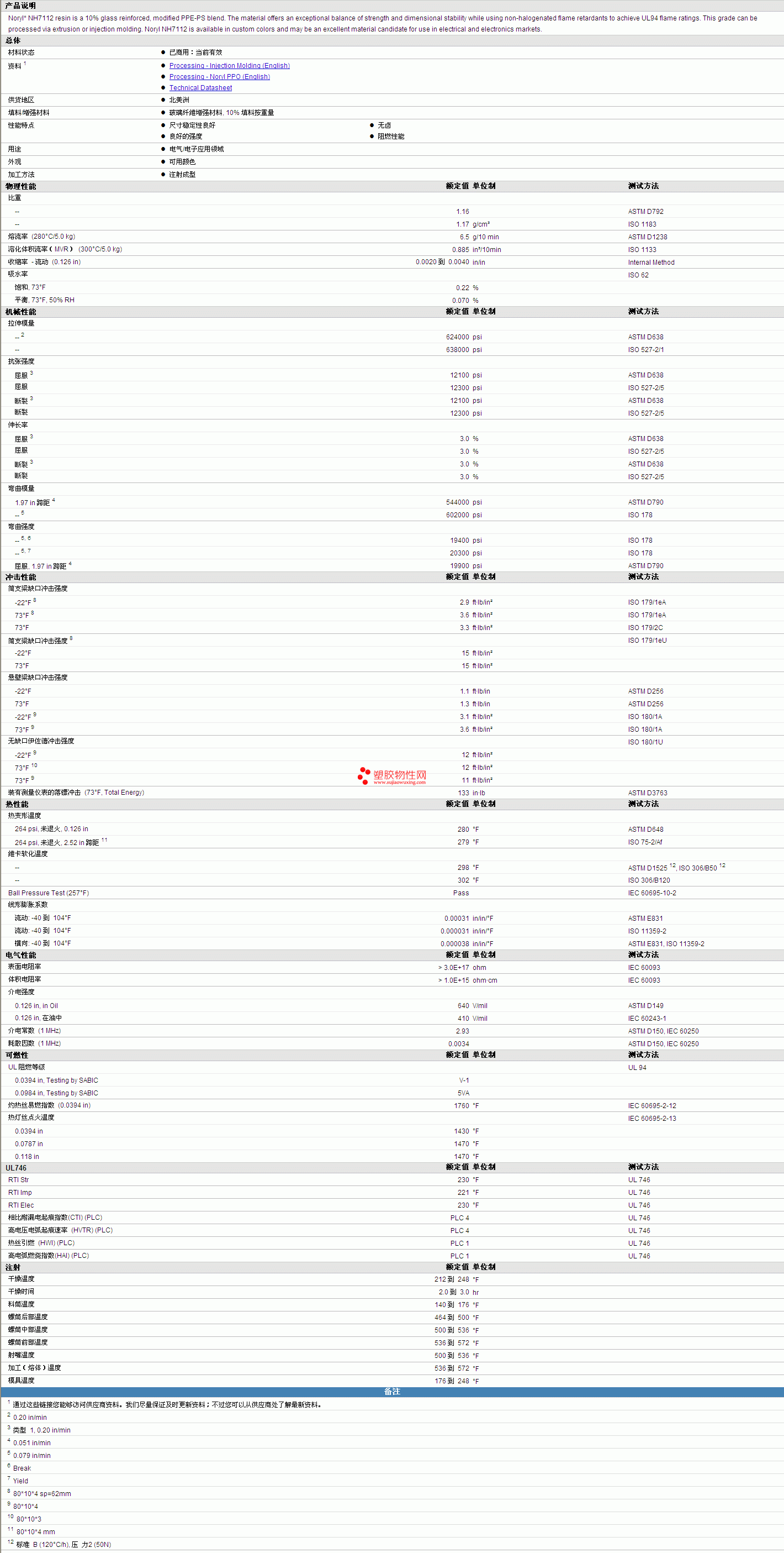 NORYL   PPE   NH7112 Resin物性表   更多资料见图