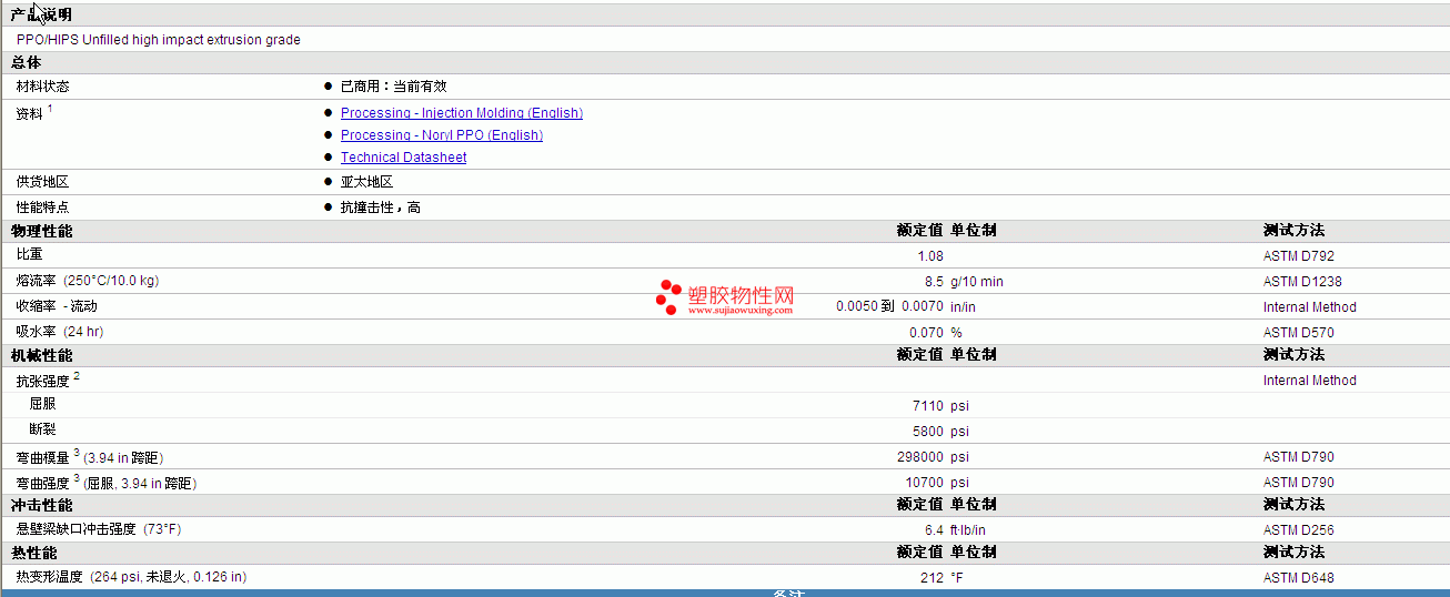 | 机械性能 | 额定值 | 单位制 | 测试方法 |