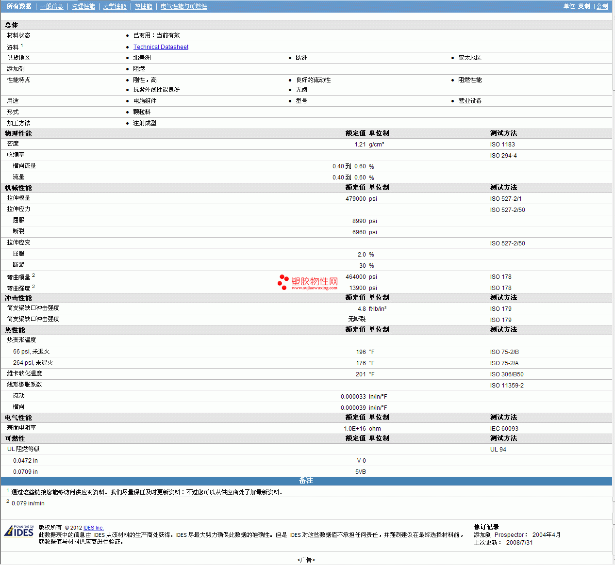 其他工程塑料物性表