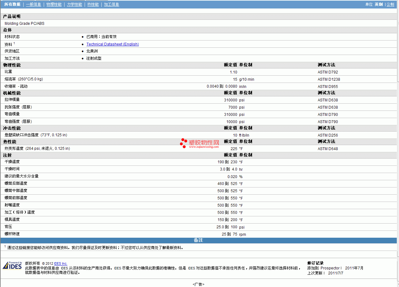 NEXUS PC/ABS PC/ABSQX7005 物性表