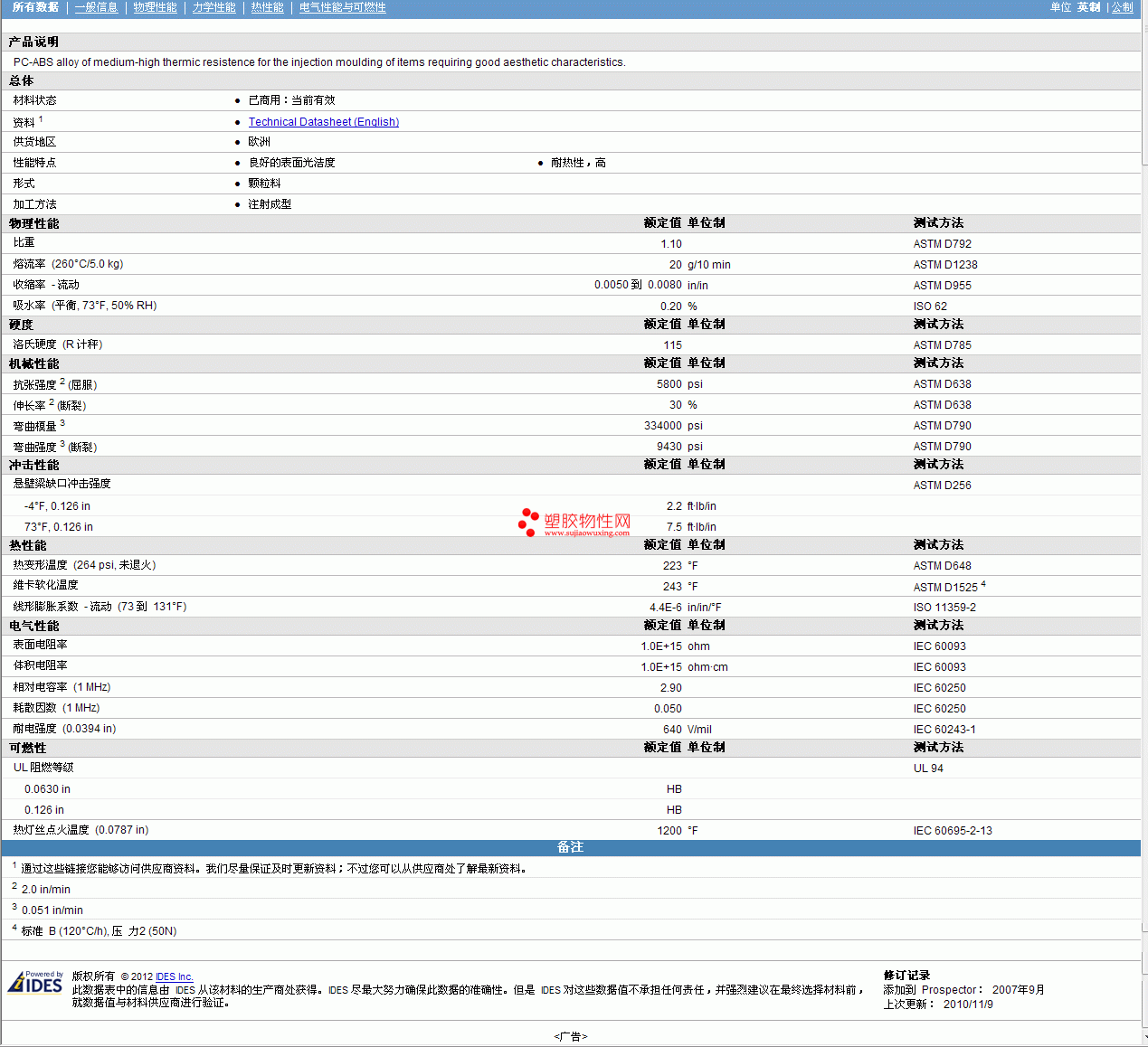 如需了解Niblend ABS/PC S45 HG 物性表更多详情,ROHS(SGS)报告、物质安全资料表(MSDS)、材质证明、UL黄卡等,最新行情报价等可来电咨询:赵先生:13424755533 或QQ:27660005