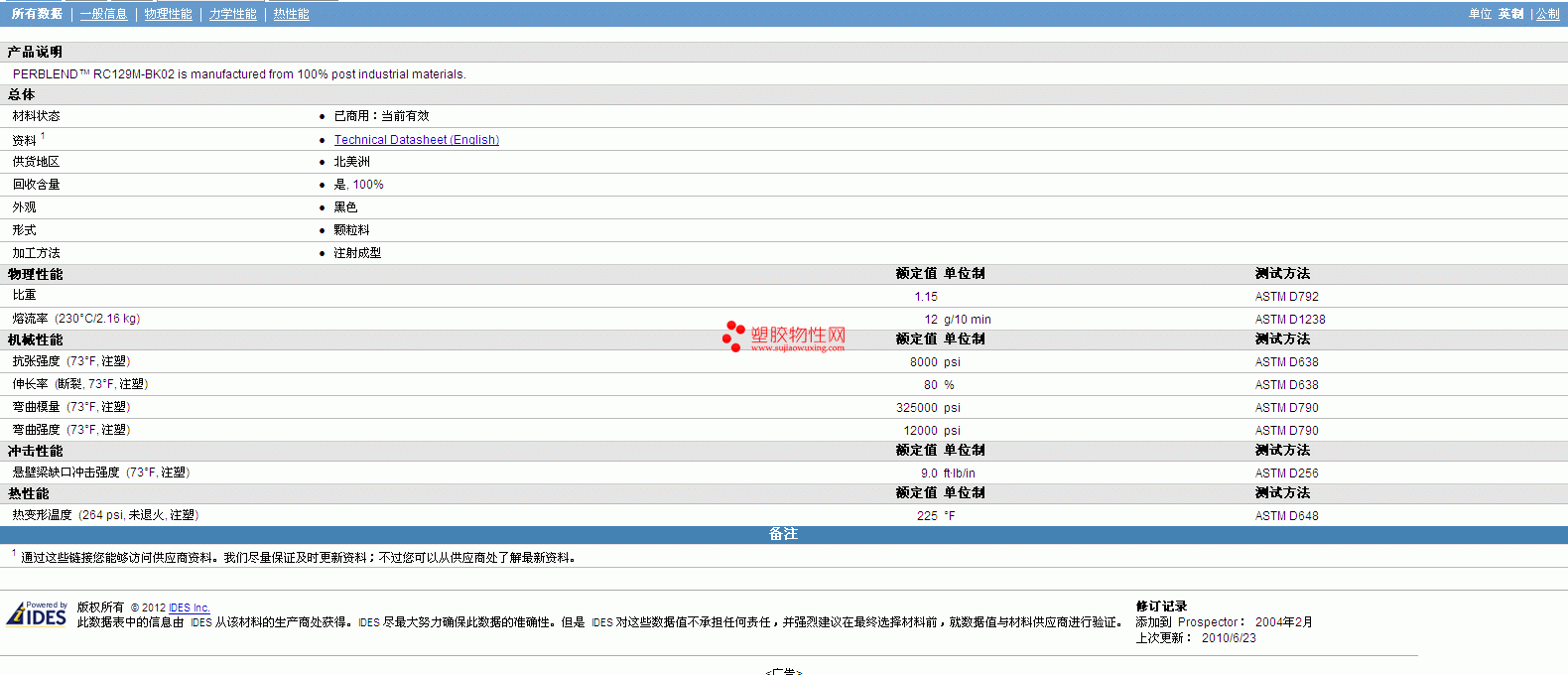 更多PERBLEND ABS/PC RC129M-BK02 物性表报价,图片、材质证明、UL黄卡、物质安全资料表(MSDS)等可来电咨询赵先生:13424755533或QQ: 27660005