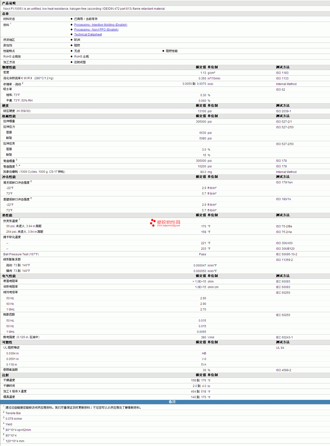 | 溶化体积流率(MVR) (280°C/1.2 kg) | 0.366 | in³/10min | ISO 1133 |