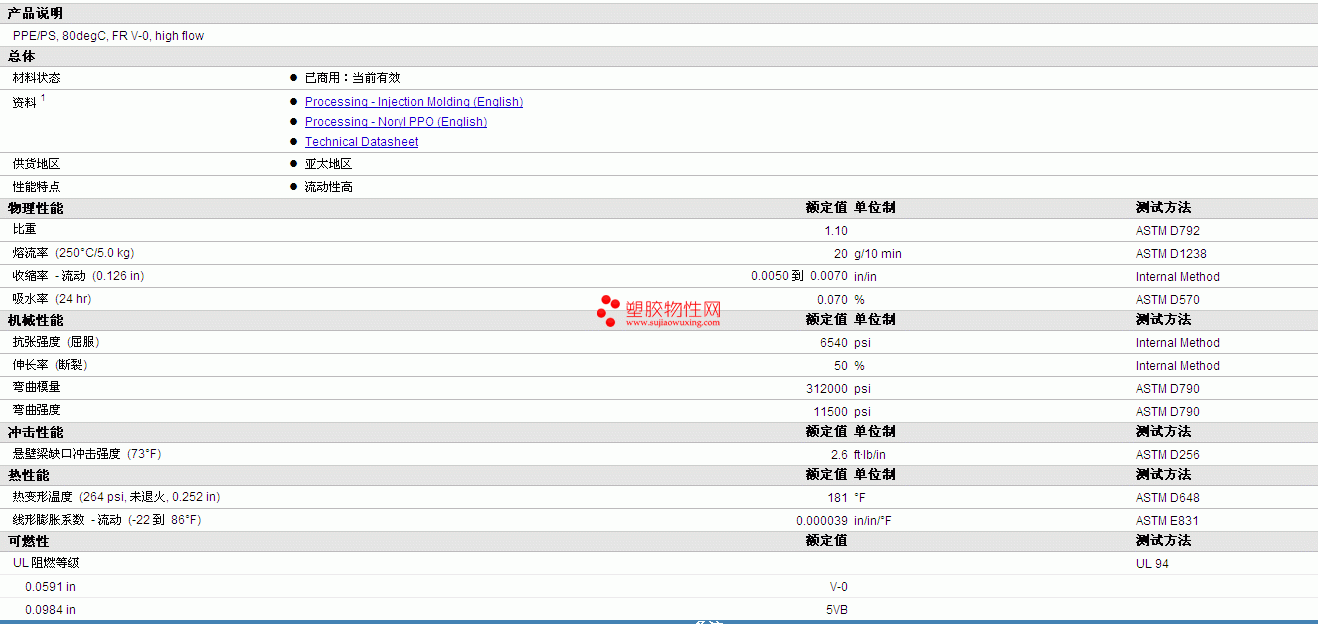 | 机械性能 | 额定值 | 单位制 | 测试方法 |