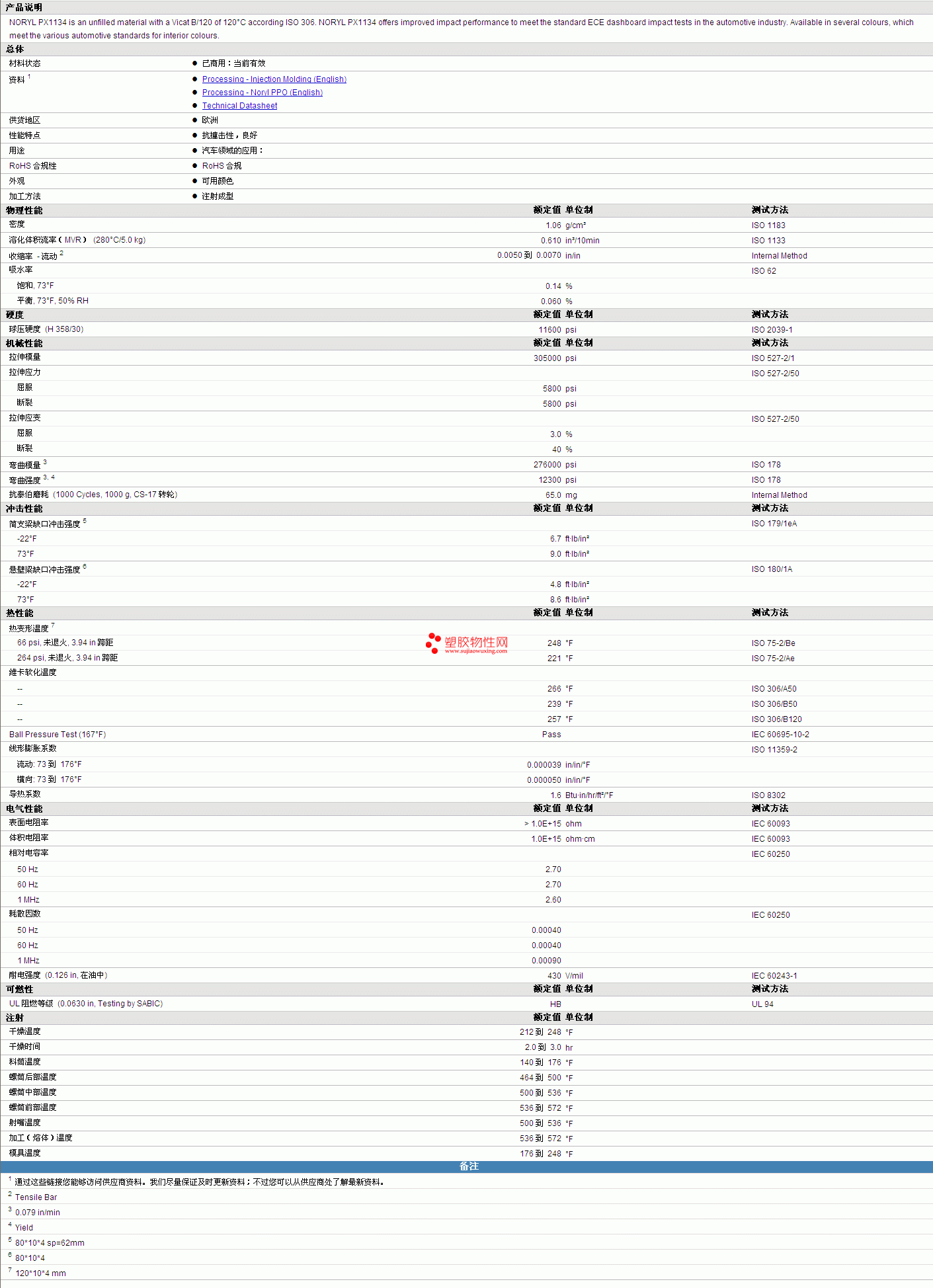 | 溶化体积流率(MVR) (280°C/5.0 kg) | 0.610 | in³/10min | ISO 1133 |