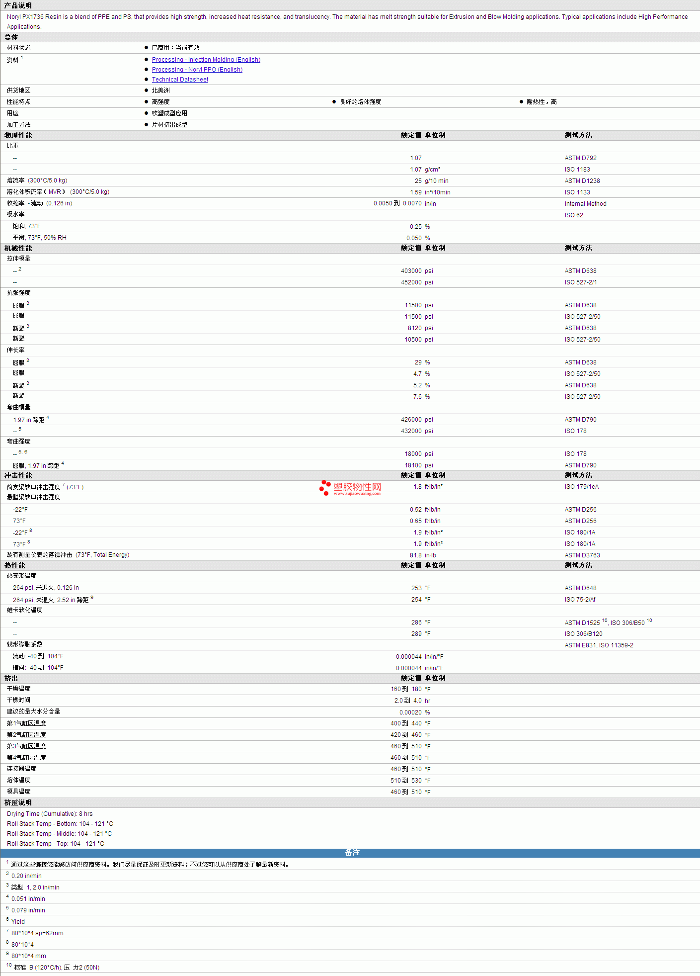 | 溶化体积流率(MVR) (300°C/5.0 kg) | 1.59 | in³/10min | ISO 1133 |