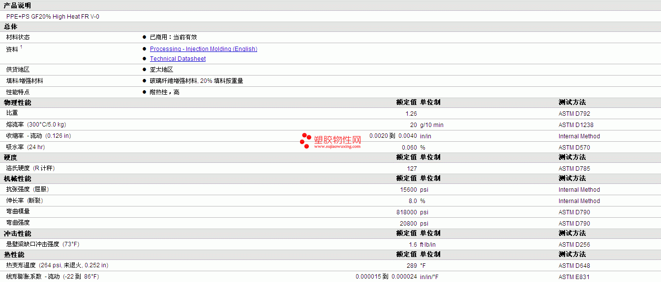 | 机械性能 | 额定值 | 单位制 | 测试方法 |