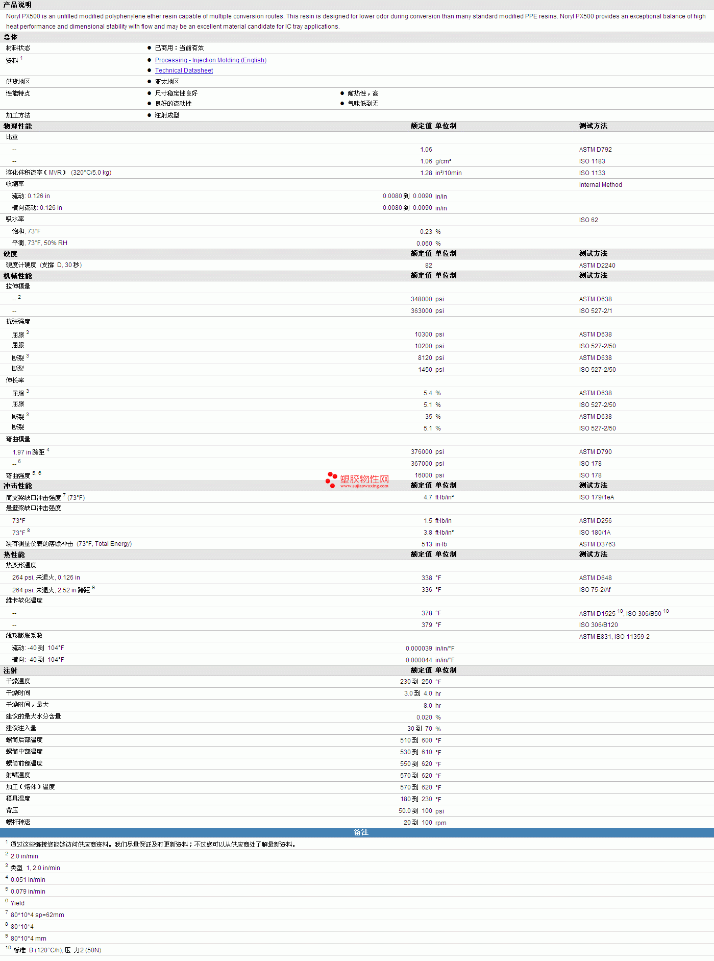 | 溶化体积流率(MVR) (320°C/5.0 kg) | 1.28 | in³/10min | ISO 1133 |