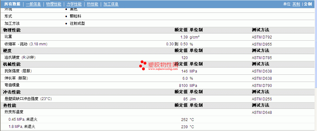 | 机械性能 | 额定值 | 单位制 | 测试方法 |