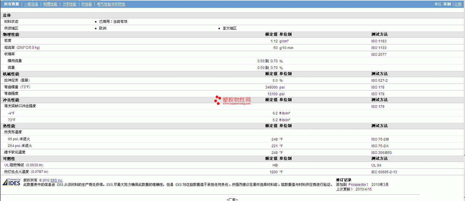 | 物理性能 | 额定值 | 单位制 | 测试方法 |