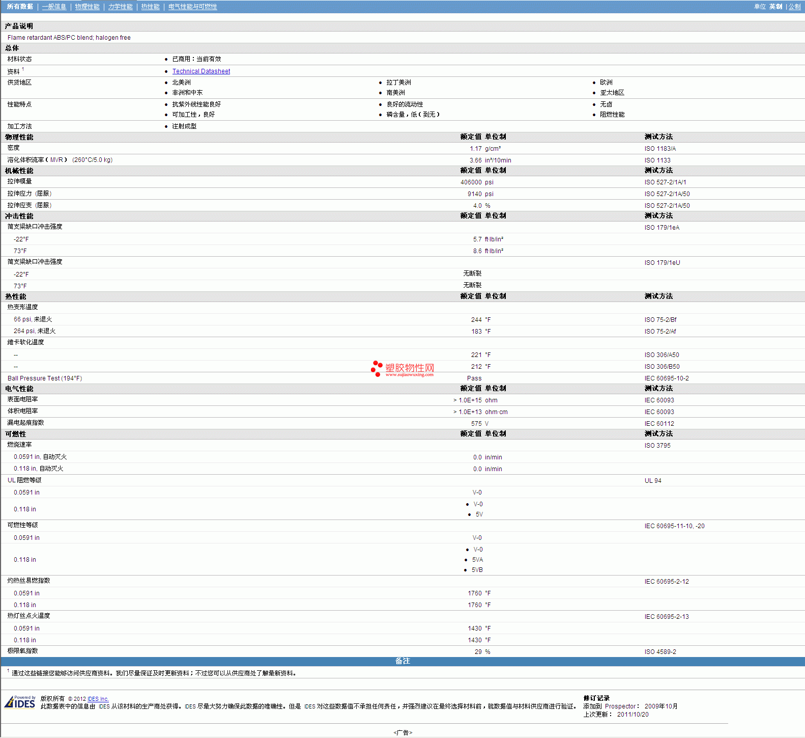 更多POLYFLAM ABS/PC RMMB 40300 物性表图片,报价、物质安全资料表(MSDS)、材质证明、UL黄卡等,最新行情报价等可来电咨询赵先生:13424755533或QQ: 27660005