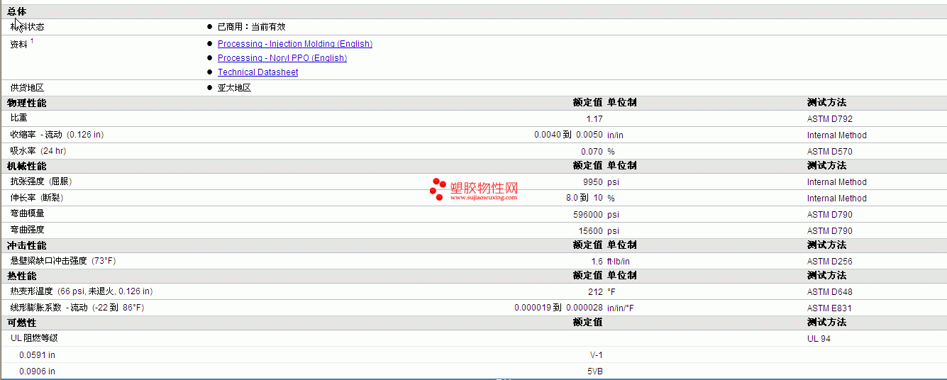 | 机械性能 | 额定值 | 单位制 | 测试方法 |