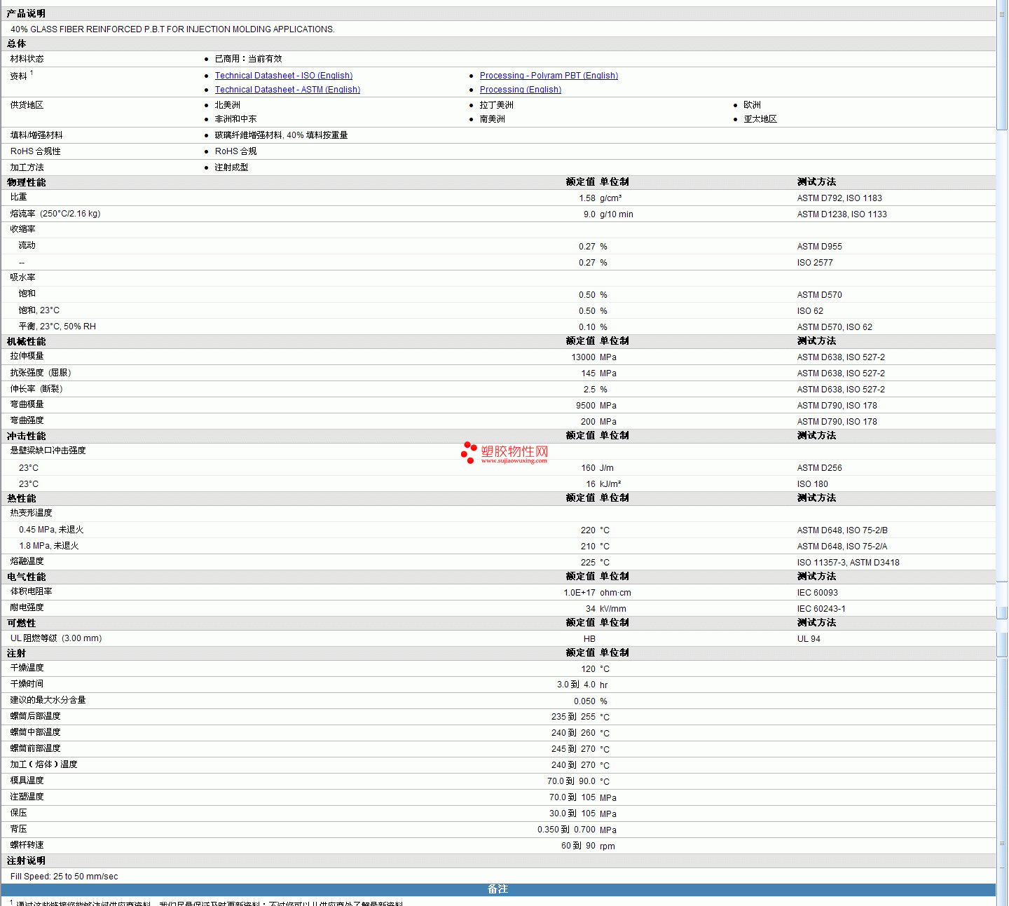 RAMSTER pbt PF300G8物性表 见图片