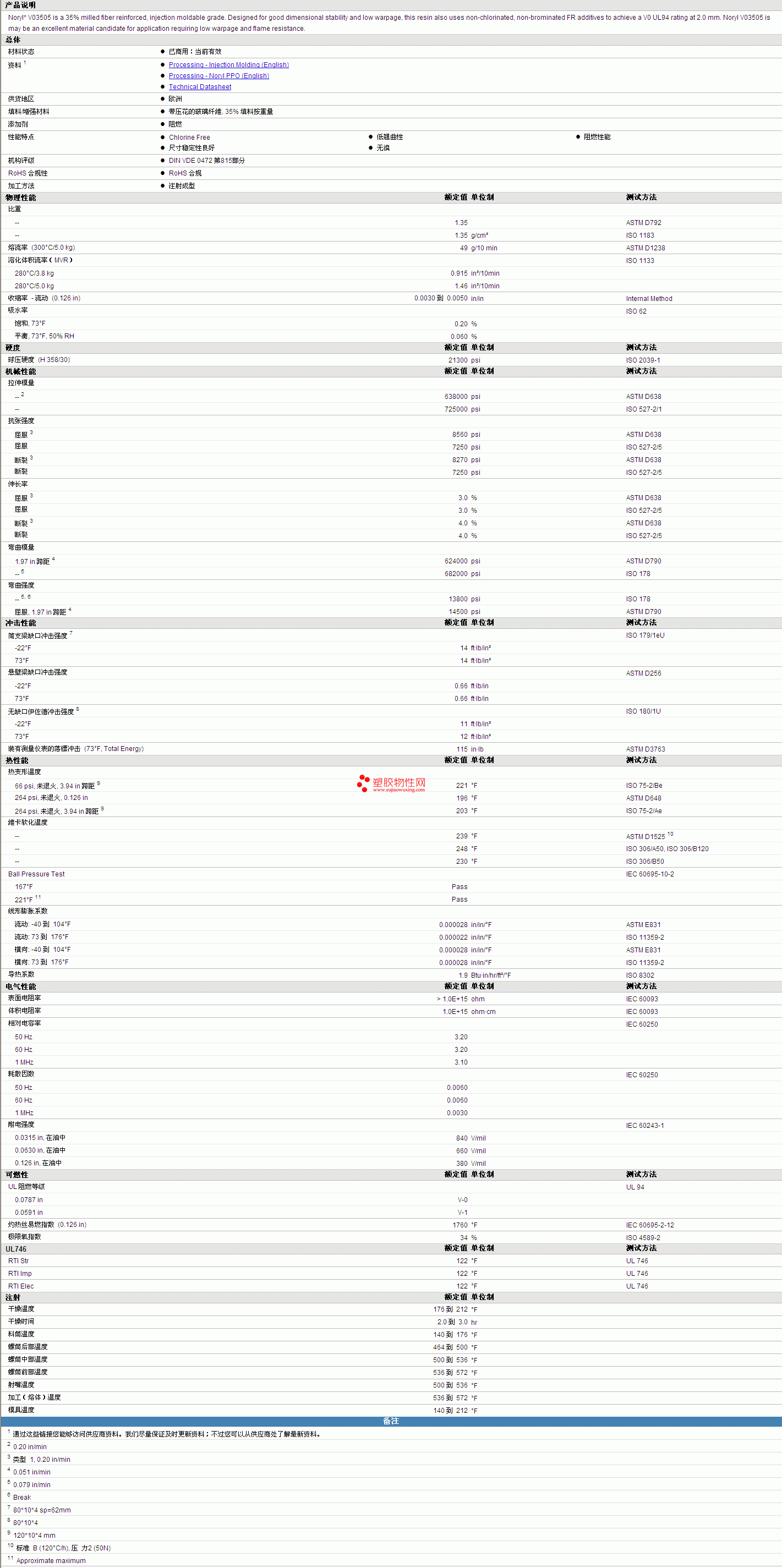 NORYL PPE V03505 Resin 物性表 详情见附件