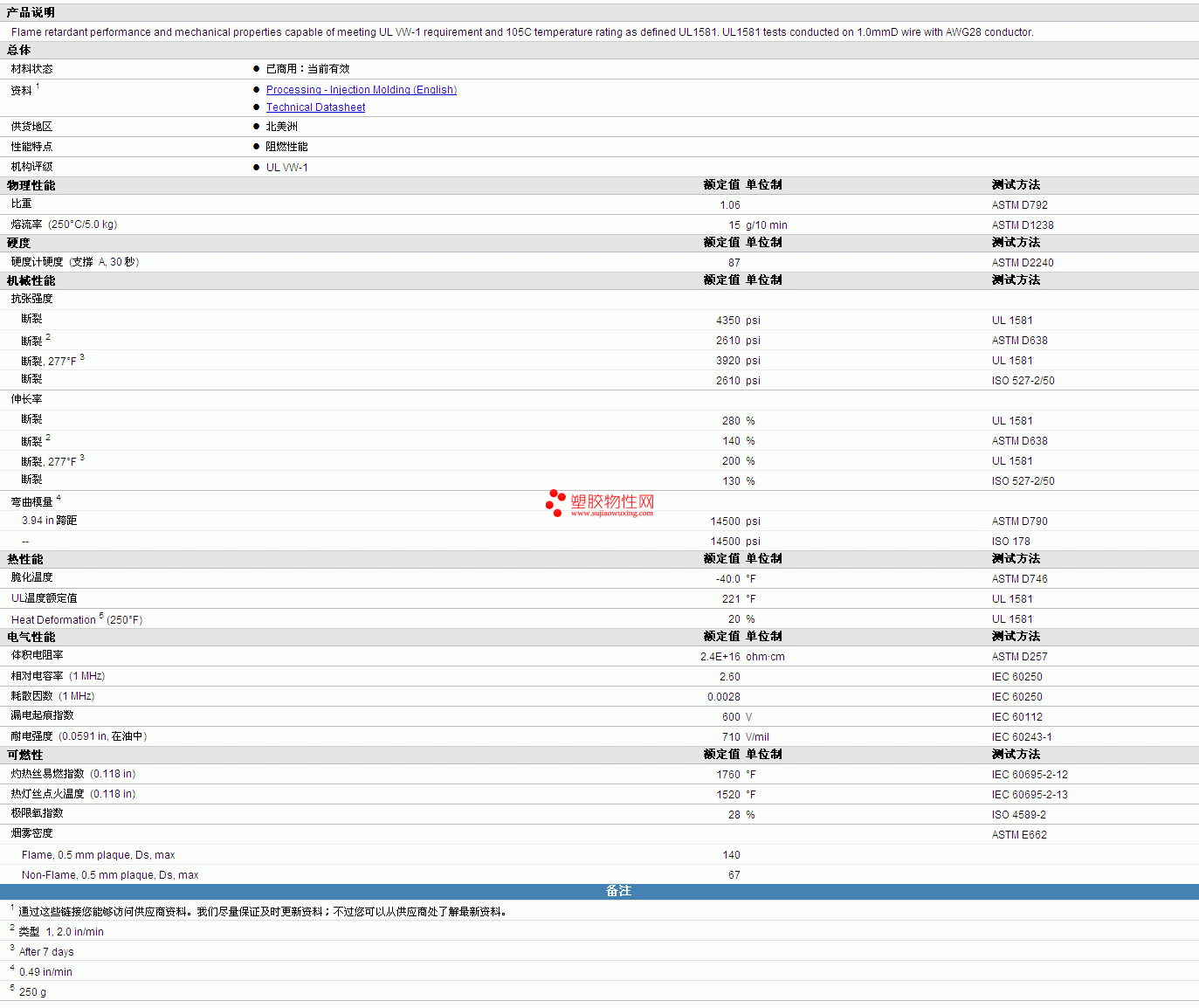 NORYL PPE WCA871A Resin 物性表 如图所示