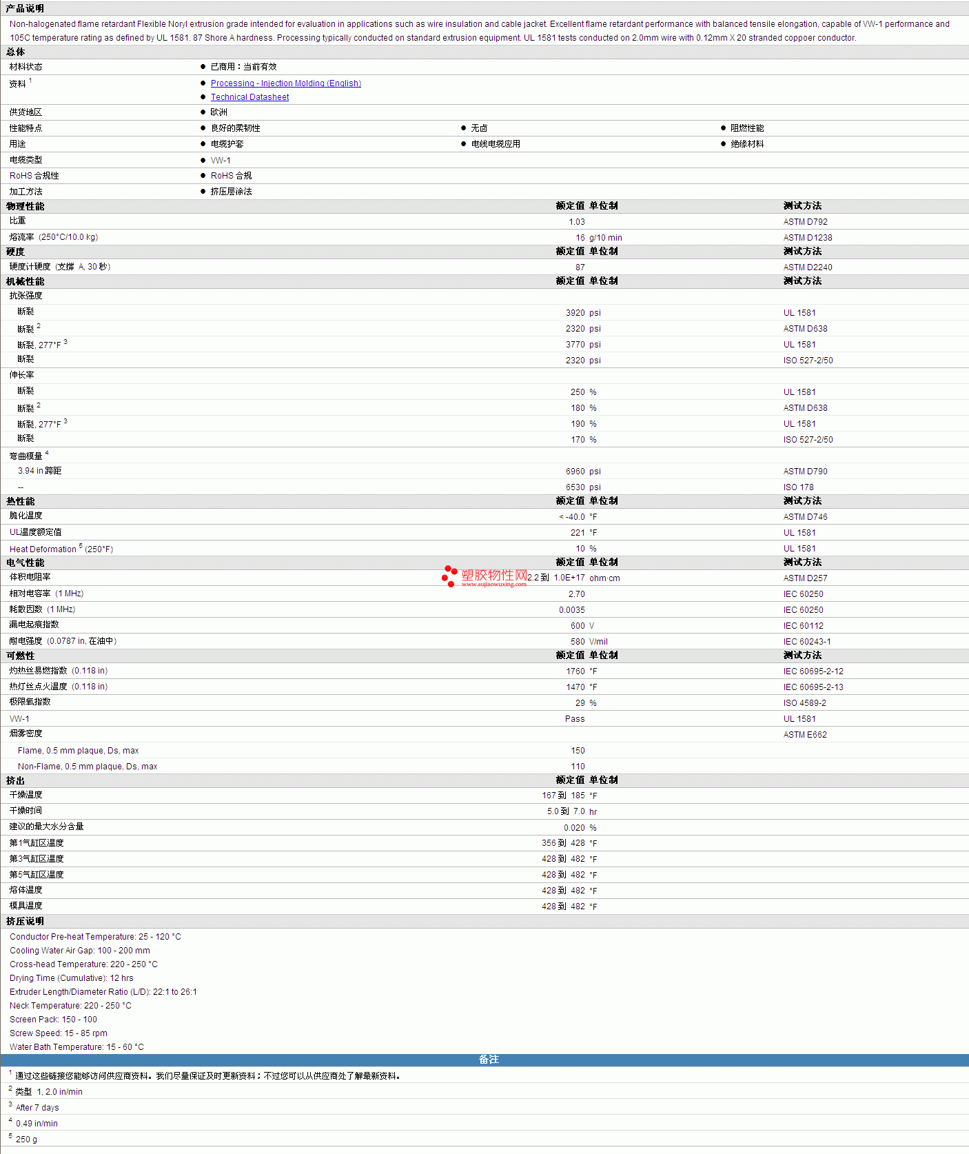| 机械性能 | 额定值 | 单位制 | 测试方法 |