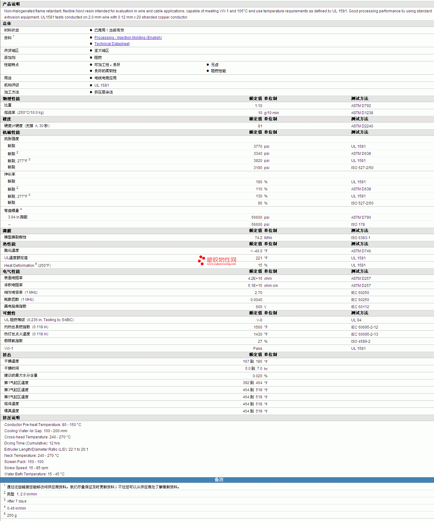 | 机械性能 | 额定值 | 单位制 | 测试方法 |