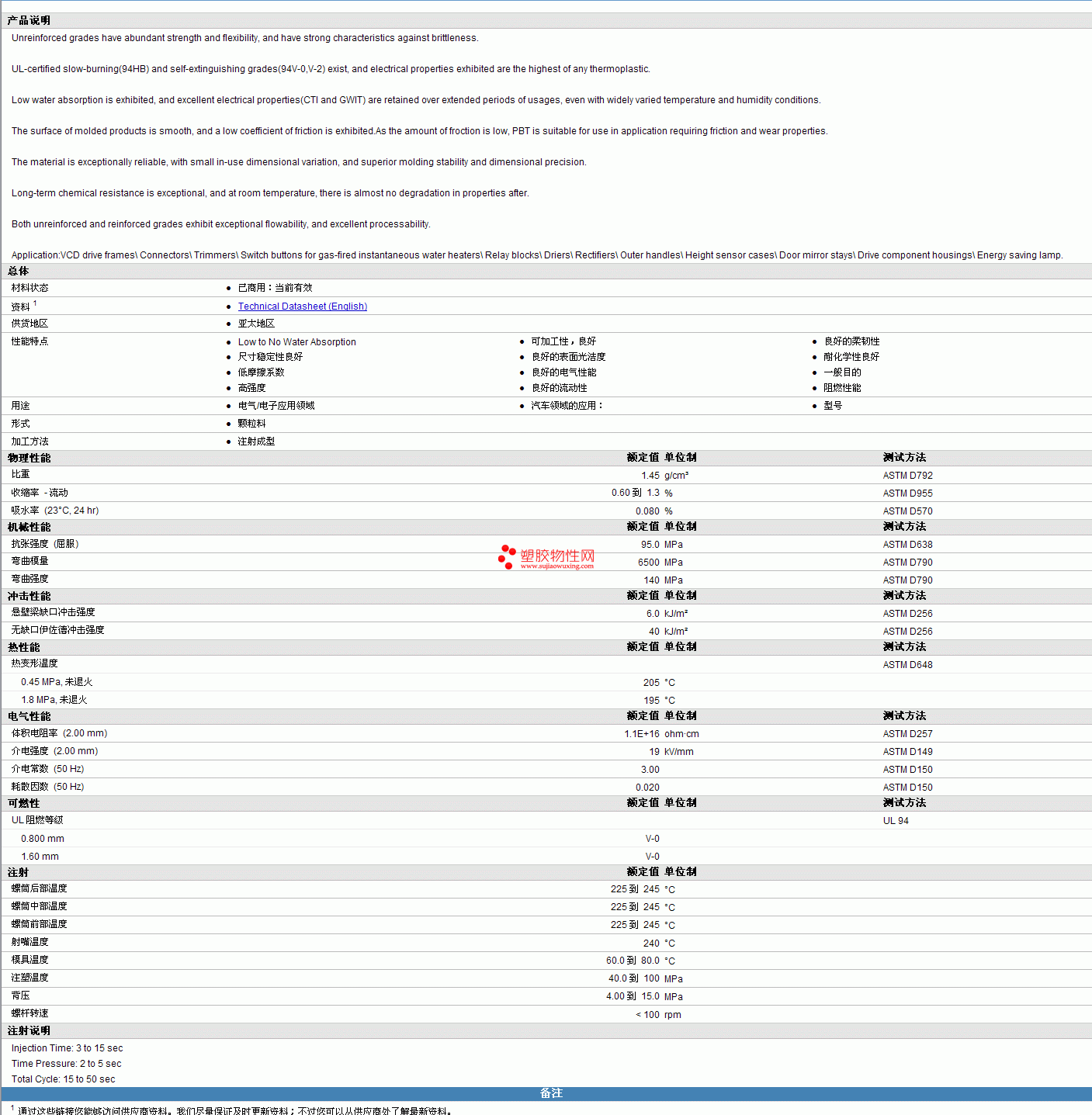 Ranger PBT PBT-201-G10物性表 见图片