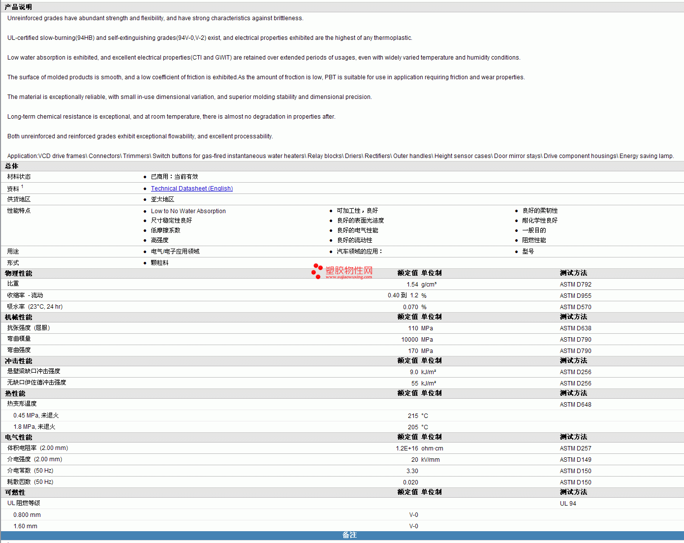 Ranger PBT PBT-201-G20 211物性表 见图片