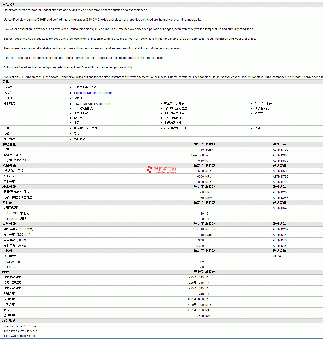 Ranger PBT PBT-403-M-G0物性表 见图片