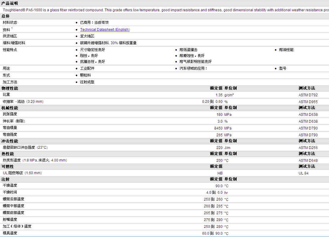 | 抗张强度 | 180 | MPa | ASTM D638 |