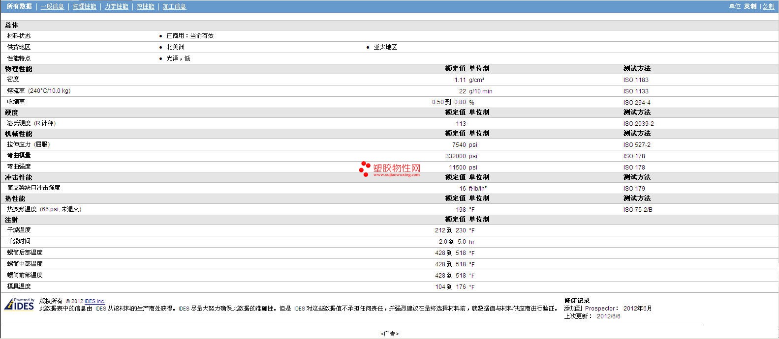 Tenite Propionate CAP 371A2R30012 Natural Trsp 物性表