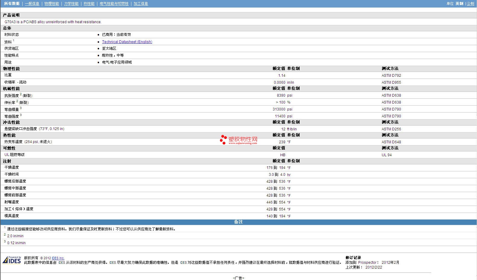 需了解TEKALOY ABS/PC G70A3 物性表材质证明、ROHS(SGS)报告、物质安全资料表(MSDS)、UL黄卡等可来电咨询:赵先生:13424755533或QQ: 27660005