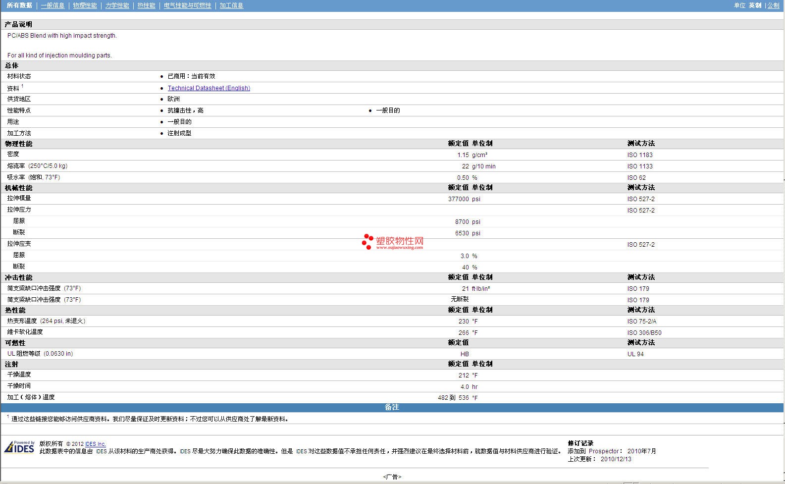 更多TEREZ ABS/PC Blend 3003 物性表图片,报价、物质安全资料表(MSDS)、材质证明、UL黄卡等,最新行情报价等可来电咨询赵先生:13424755533或QQ: 27660005
