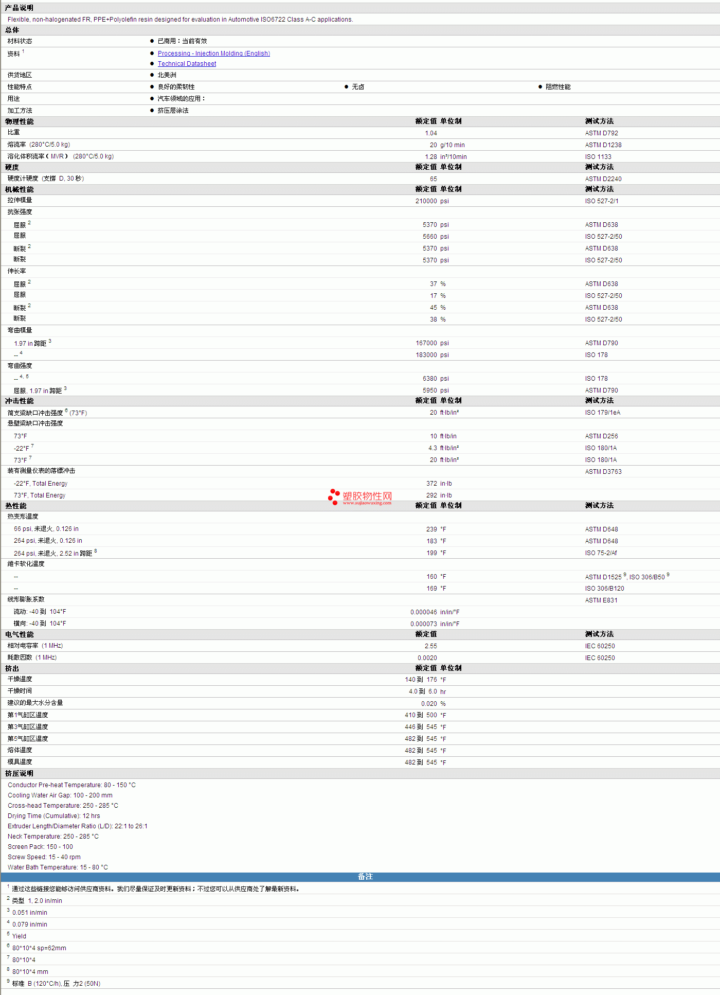 | 机械性能 | 额定值 | 单位制 | 测试方法 |