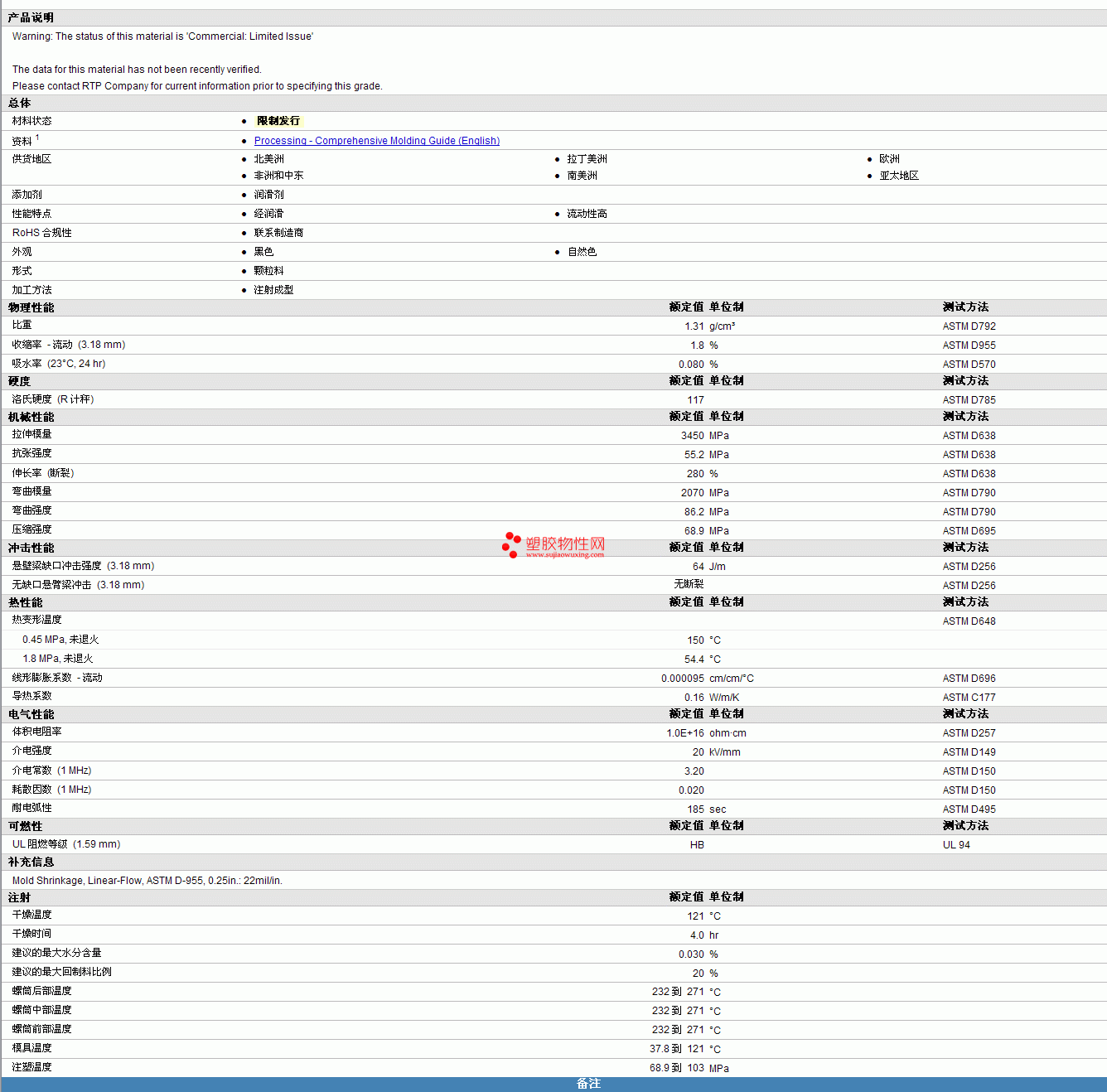 RTP Compounds 1000 HF L物性表 见图片