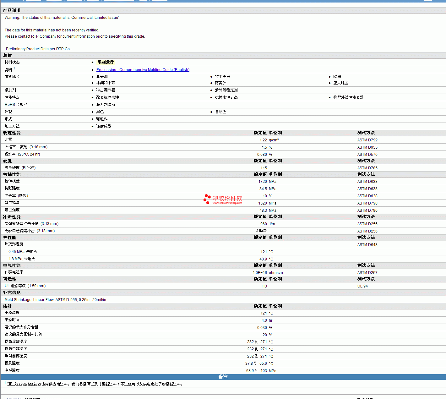 RTP Compounds 1000 HI UV塑胶原料更多详情,PC专家,可来电咨询赵先生:13424755533 QQ:27660005