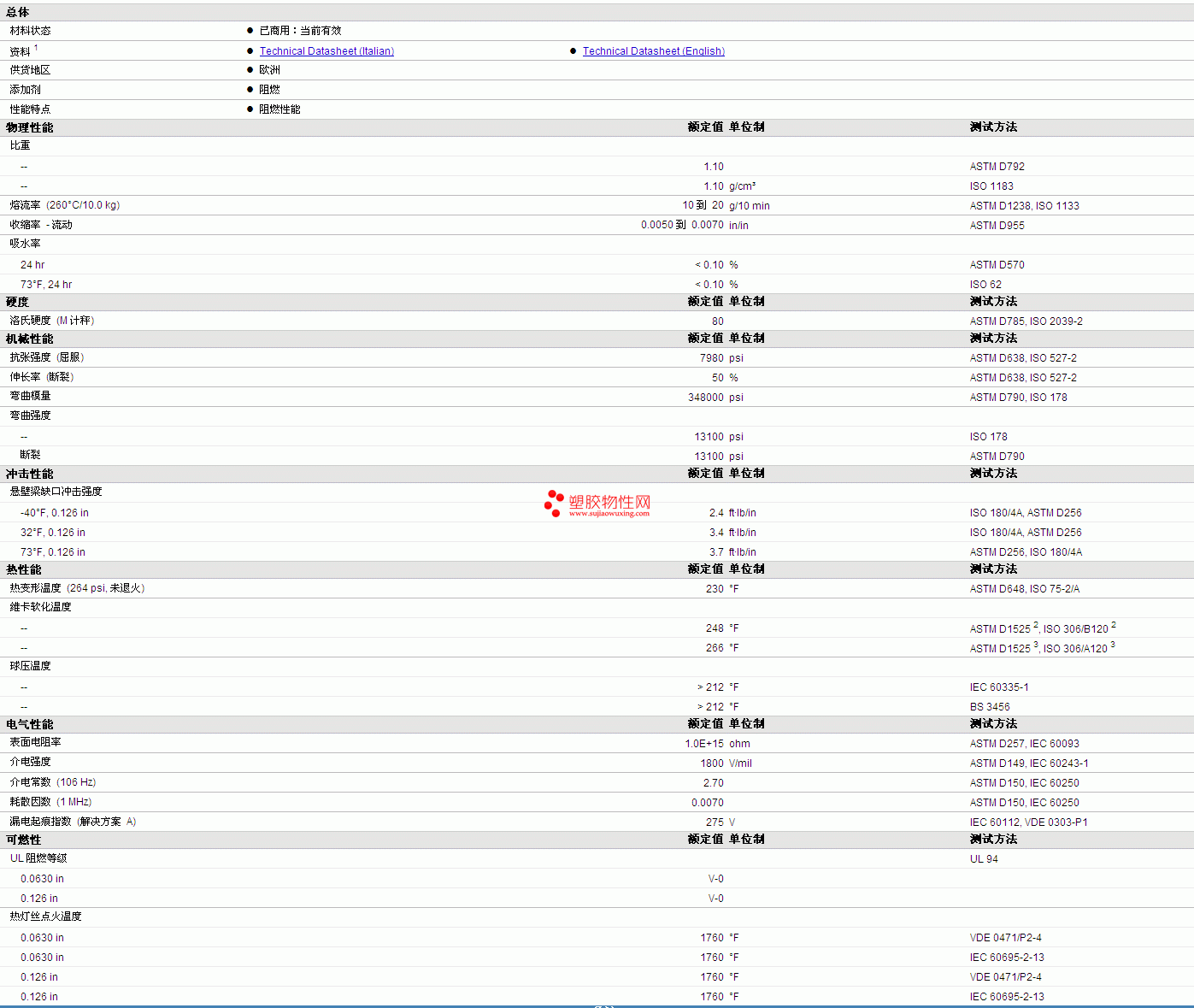 | 收缩率 - 流动 | 0.0050 到 0.0070 | in/in | ASTM D955 |