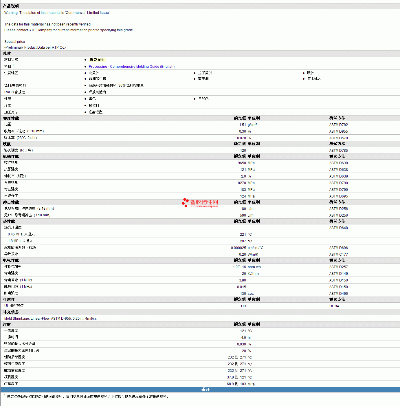 RTP CompoundsPBT 1005 SP物性表 见图片