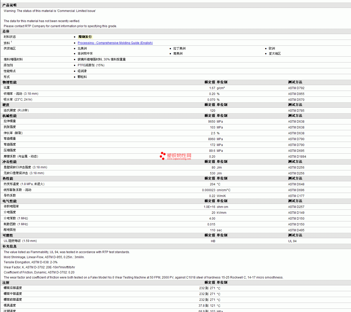 RTP Compounds 1005 TFE 15 BLUE物性表 见图片