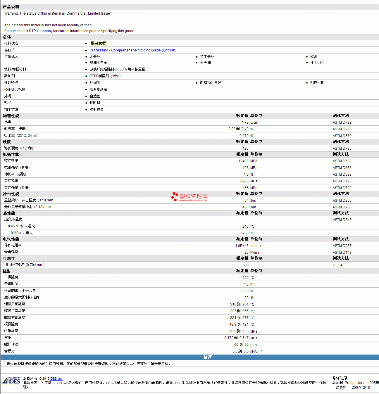 RTP CompoundsPBT 1005 TFE 15 FR物性表 见图片
