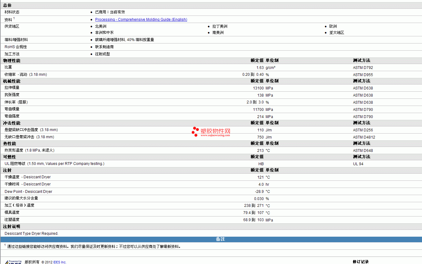 RTP CompoundsPBT 1007物性表 见图片