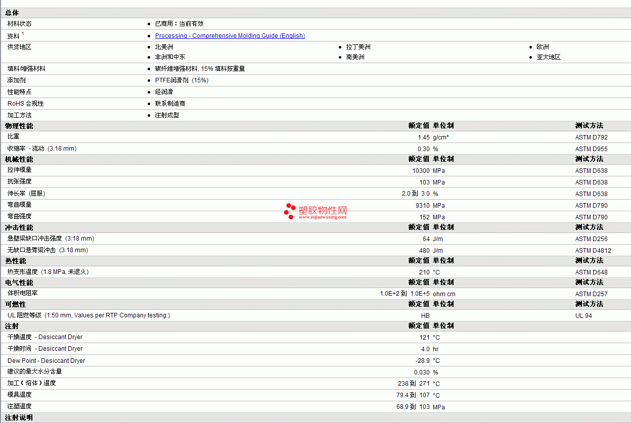 RTP Compounds PBT 1082 TFE 15物性表 见图片