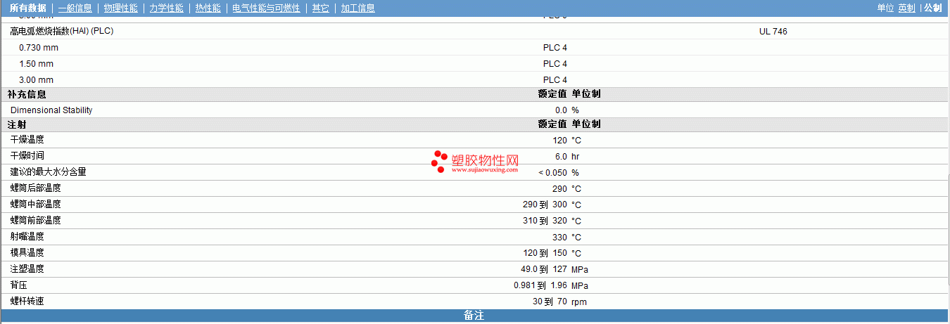 | 机械性能 | 额定值 | 单位制 | 测试方法 |