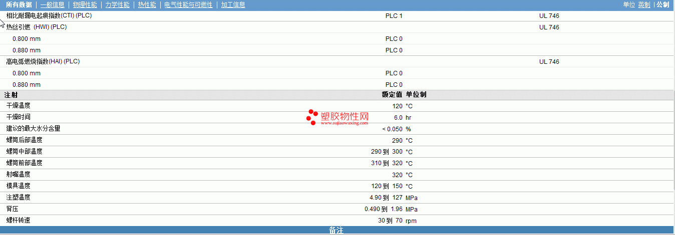 | 机械性能 | 额定值 | 单位制 | 测试方法 |