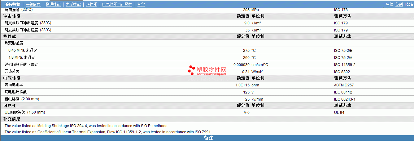 | 机械性能 | 额定值 | 单位制 | 测试方法 |