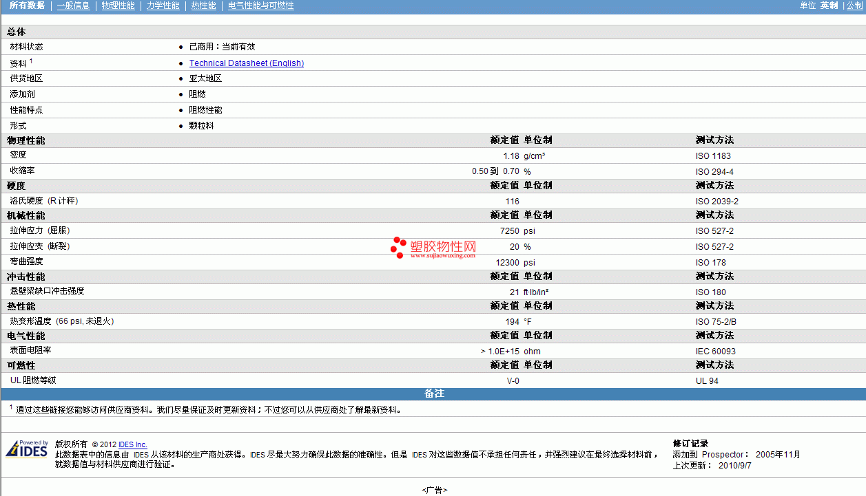 Acrylonitrile Butadiene Styrene/Polycarbonate (ABS/PC) 2550 UL黄卡